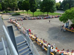 Kurz vor den Sommerferien wird die "längste Frühstückstafel an unserer Schule" veranstaltet - unterstützt vom Förderverein.