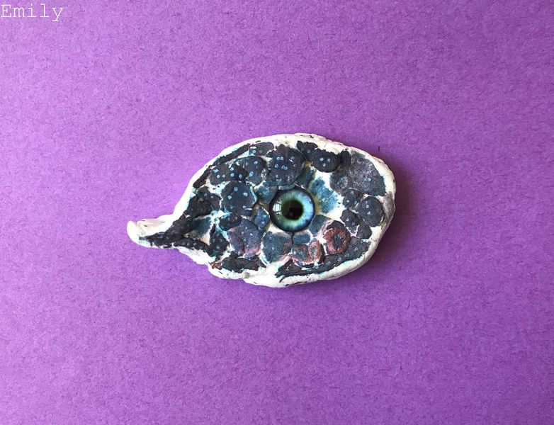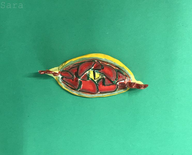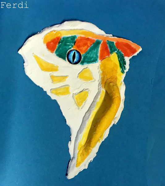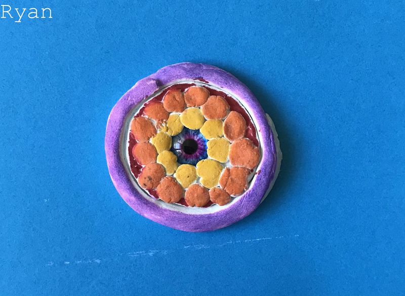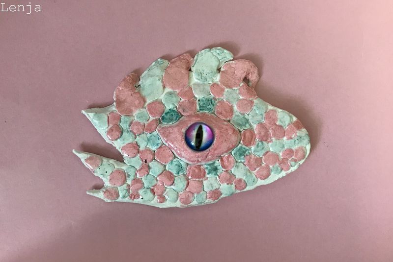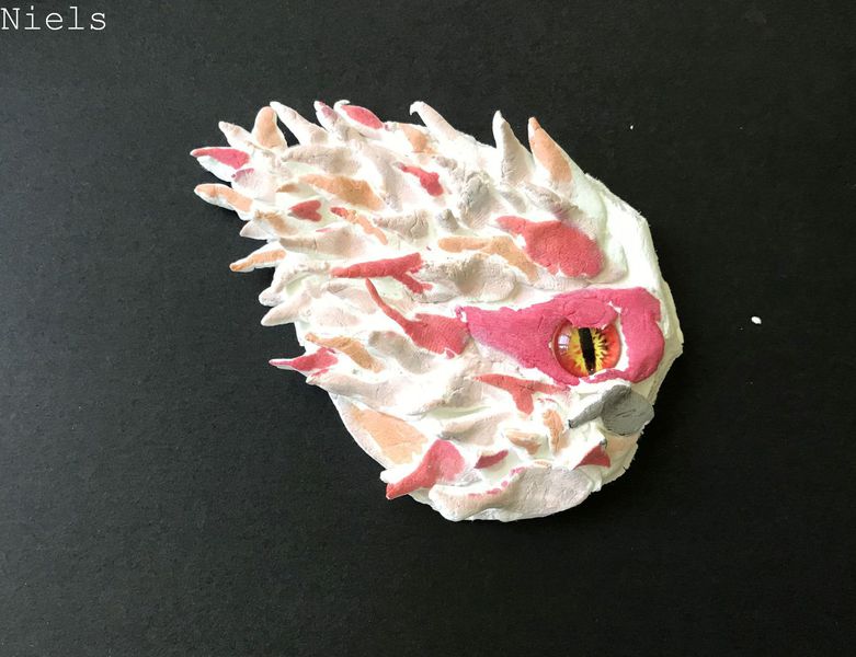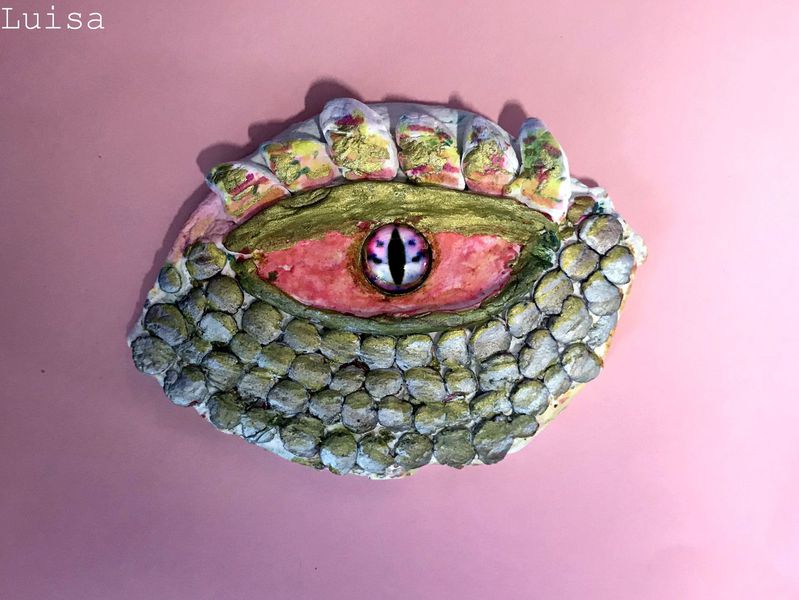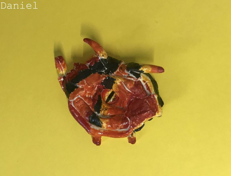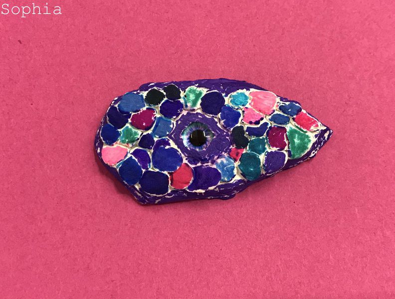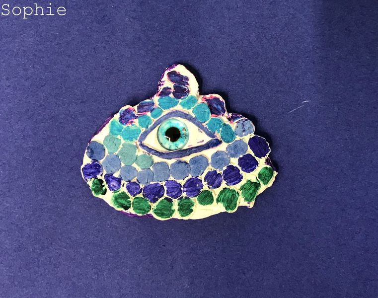 Die Kinder der Klasse 4a fertigten aus Modelliermasse um ein bestehendes Glasauge herum Drachenaugen mit schuppiger Haut an, die sie mit Fasermalern nach der Trocknungszeit bemalten. Bei dieser Aufgabe konnten die Schülerinnen und Schüler ihrer Phantasie freien Lauf lassen und ganz eigene Charaktere erschaffen. Wasser- Luft- und Feuerdrachen sind herausgekommen, tollpatschige Gesellen oder aber angriffslustige Panzerdrachen blicken uns neugierig an.